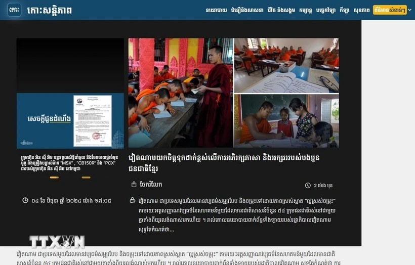 Trong những ngày qua, nhiều cơ quan báo chí truyền thông Campuchia đã đăng tải các bài viết đề cao hoạt động dạy và học tiếng Khmer ở các tỉnh, thành khu vực đồng bằng sông Cửu Long.