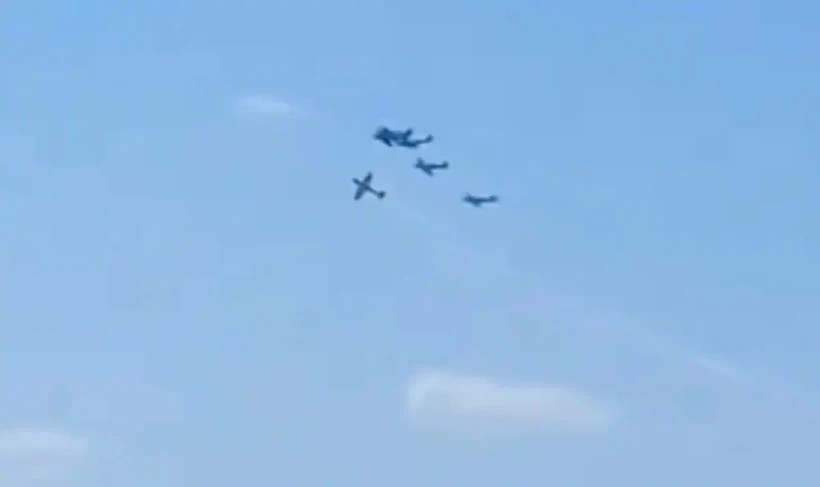 Đoạn video do một khán giả ghi lại và đăng lên mạng xã hội cho thấy đội hình 6 chiếc máy bay đang bay, sau đó một chiếc bay lên cao và dường như chạm vào một chiếc khác rồi rơi xuống đất.