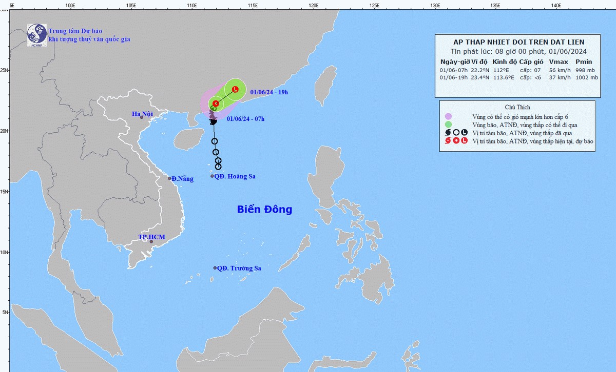 Do ảnh hưởng của áp thấp nhiệt đới, vùng biển phía Tây Bắc của khu vực Bắc Biển Đông có mưa rào, dông mạnh, gió mạnh cấp 6-7, giật cấp 9, biển động mạnh.