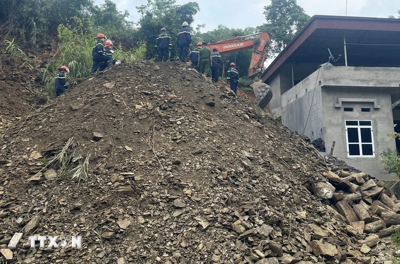 Đất đá sạt lở đã vùi lấp một phần ngôi nhà thuộc hộ nghèo ở huyện Ngân Sơn (tỉnh Bắc Kạn), trong nhà có ba người gồm anh H.T.H, sinh 1996; vợ anh H sinh năm 1997 và con sinh năm 2022.