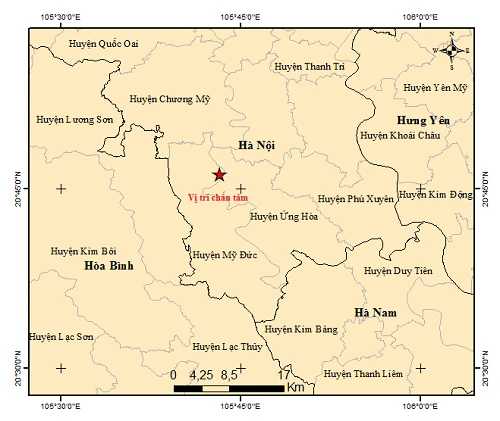 Xảy ra động đất có độ lớn 4 gây rung lắc ở nhiều khu vực trên địa bàn Hà Nội