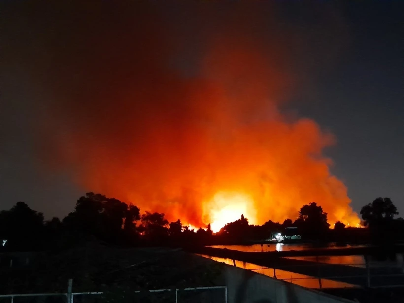Tối 24/2, cháy lớn bùng phát tại khu đất trống nhiều cỏ dại thuộc Khu Dân cư Suối Giữa ở Bình Dương, thời tiết khô hanh và gió mạnh khiến ngọn lửa càng lan rộng.