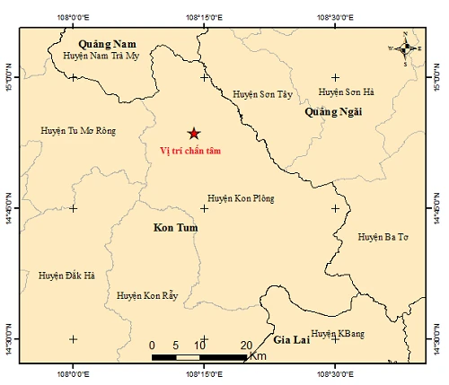 Kon Tum: Xảy ra năm trận động đất trong buổi sáng, lớn nhất 4.0 độ