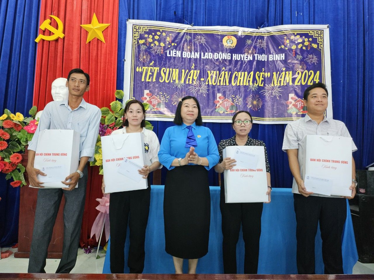 Ngày 30-01, Liên Đoàn Lao Động huyện Thới Bình (LĐLĐ), tổ chức thăm và tặng 286 suất quà cho đoàn viên, người lao động có hoàn cảnh khó khăn thuộc Công đoàn cơ sở trên địa bàn huyện. Trong đó, có 10 phần quà từ Ban nội chính Trung ương gửi tặng đến công đoàn viên trong dịp Tết Nguyên đán Giáp Thìn 2024.