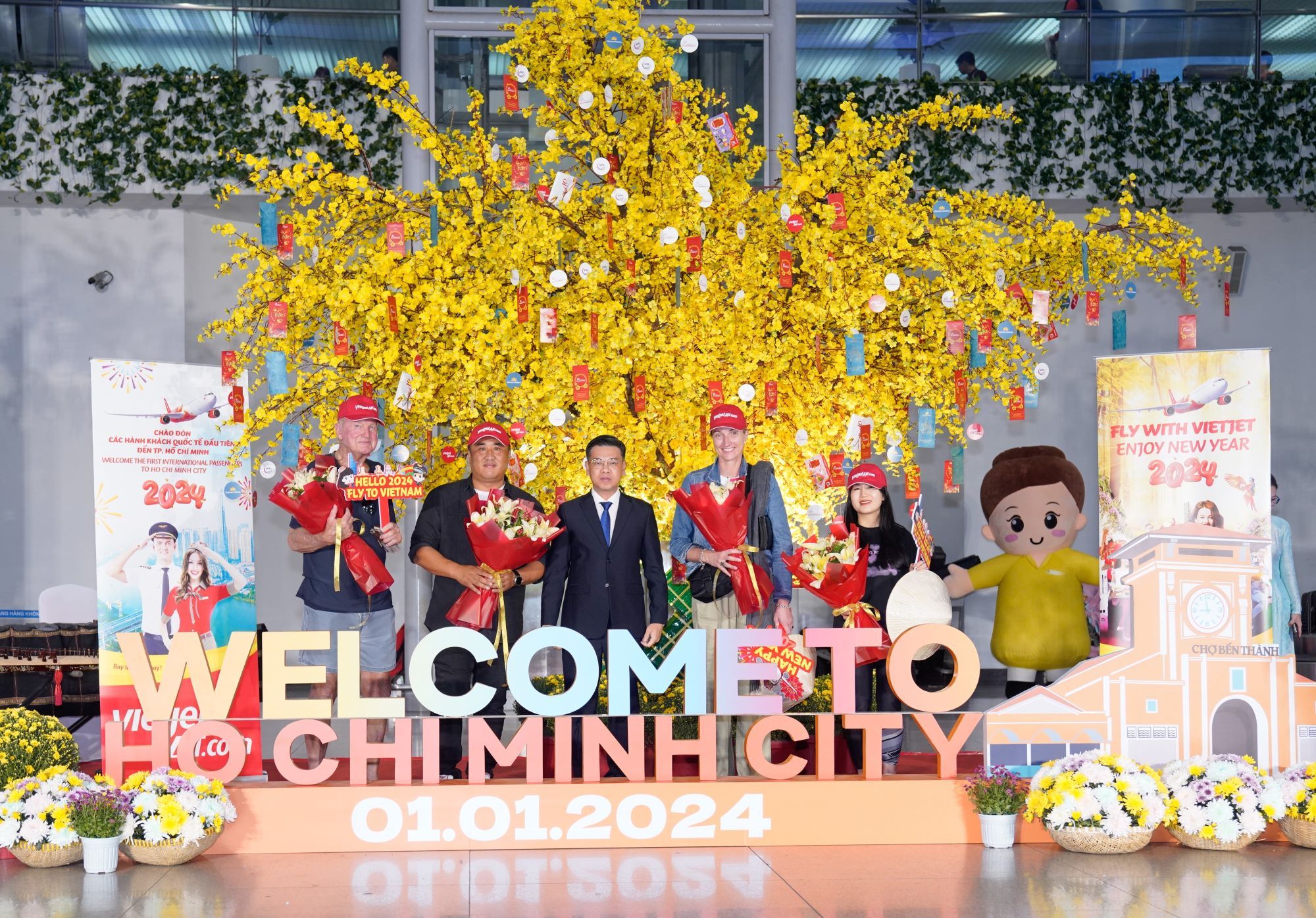 Đón chào năm 2024 với những hy vọng mới cùng những điều tốt đẹp đến với tất cả mọi người, những hành khách quốc tế đầu tiên đến với TP. Hồ Chí Minh đã nhận được những lời chúc mừng năm mới, quà tặng may mắn từ Sở Du lịch TP. Hồ Chí Minh và hãng hàng không Vietjet.