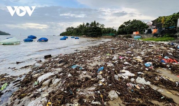Mưa lớn nhiều ngày qua khiến nước từ thượng nguồn đổ về kéo theo hàng tấn rác thải tấp vào bờ biển ở thôn An Vĩnh, xã Tịnh Kỳ, thành phố Quảng Ngãi, tỉnh Quảng Ngãi.
