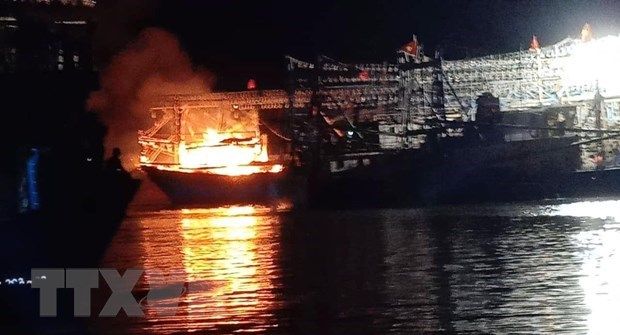 Tàu cá TTH-95294TS của tỉnh Thừa Thiên-Huế đang hành nghề lưới rê trên biển cách cửa biển Thuận An khoảng 40 hải lý đã bất ngờ bốc cháy, rất may 12 ngư dân đã kịp rời khỏi tàu cá.