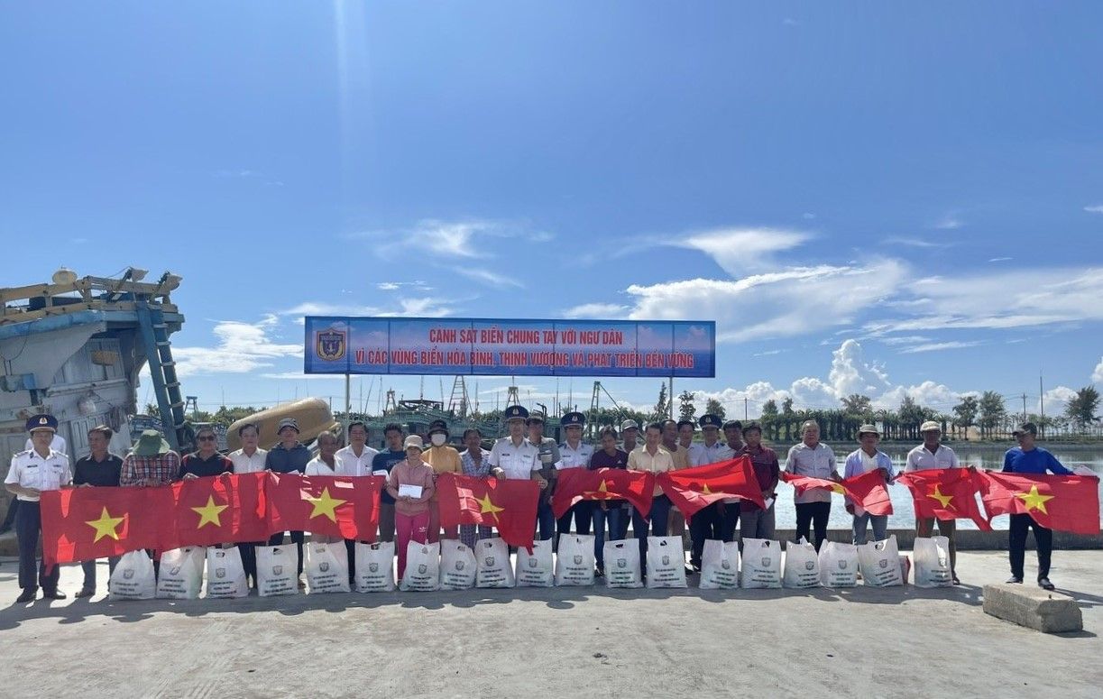 Ngoài tuyên truyền về biển đảo, phòng chống khai thác bất hợp pháp, Bộ Tư lệnh Vùng Cảnh sát biển 3 còn trao cờ tổ quốc, quà cho ngư dân.