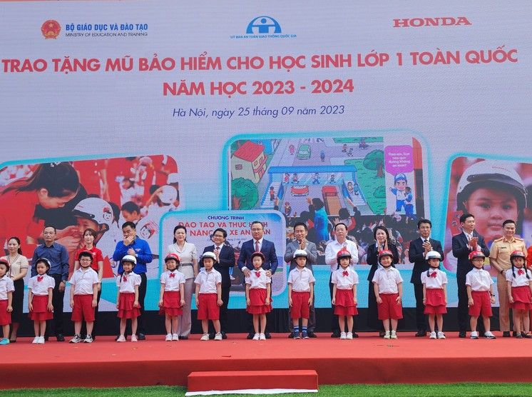 Ủy ban ATGT Quốc gia, Bộ Giáo dục & Đào tạo và Công ty Honda Việt Nam phối hợp tổ chức trao tặng khoảng 2 triệu mũ bảo hiểm (MBH) cho học sinh lớp 1 năm học 2023-2024 trên toàn quốc.