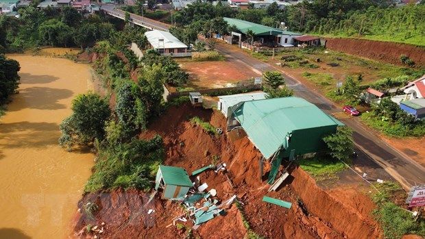 Tại khu vực sạt lở dọc đường tránh đô thị Gia Nghĩa, tỉnh Đắk Nông, phần lớn khối lượng đất ở ven đường đã sạt xuống suối Đắk R’tih, tổng diện tích bị sạt lở lên đến gần 4.000m2.