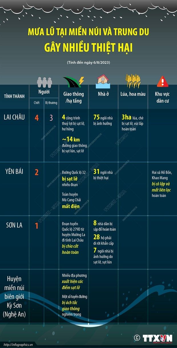 Tình trạng mưa to trên diện rộng gây ra lũ quét, sạt lở đất trong những ngày qua tại khu vực miền núi và trung du đã làm thiệt hại nặng nề về người, tài sản của nhân dân.