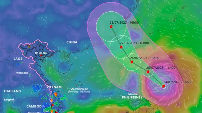 Siêu bão Doksuri hướng vào Biển Đông, Nam Bộ mưa dông