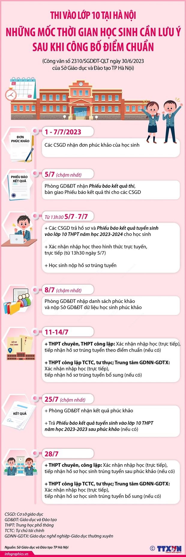 Sau khi biết điểm thi và điểm chuẩn vào lớp 10 THPT năm học 2023-2024 tại Hà Nội, các thí sinh cần lưu ý những mốc thời gian đăng ký nhập học, phúc khảo bài thi (nếu có)…