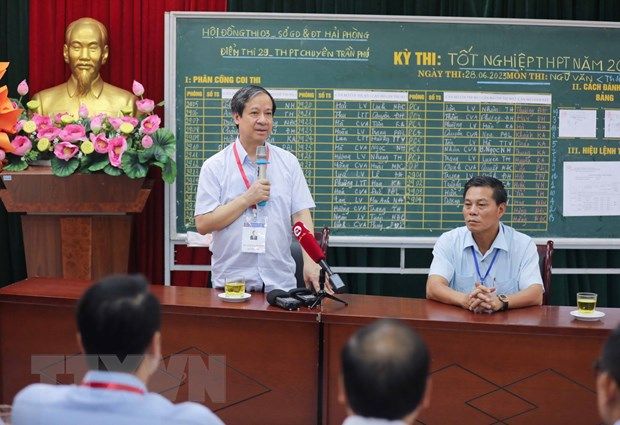 Bộ trưởng đề nghị Sở Giáo dục và Đào tạo Hải Phòng tiếp tục phối hợp chặt chẽ với các đơn vị liên quan tăng cường kiểm tra, giám sát việc thí sinh có thể mang thiết bị công nghệ cao để gian lận.