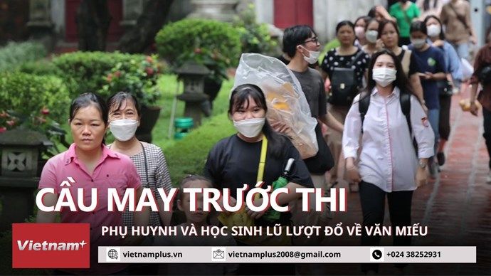 Các sỹ tử giữ tâm thế bình tĩnh, thoải mái, cùng phụ huynh đến di tích văn hóa-lịch sử Văn Miếu-Quốc Tử Giám để cầu thuận lợi, may mắn trước khi bước vào kỳ thi tốt nghiệp Trung học phổ thông năm nay.