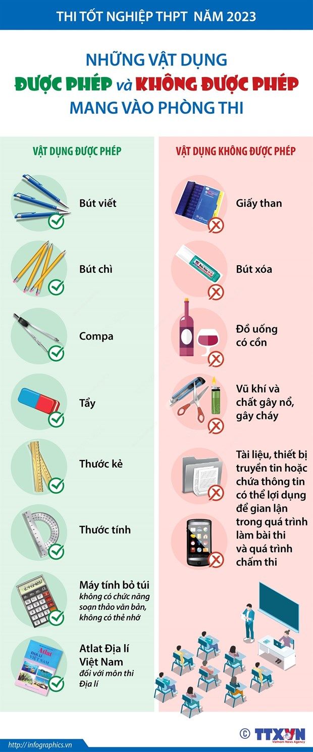 Nhằm hạn chế những sai sót có thể ảnh hưởng đến kết quả của kỳ thi tốt nghiệp THPT năm 2023, các thí sinh cần biết danh sách các vật dụng được phép và không được phép mang vào phòng thi.