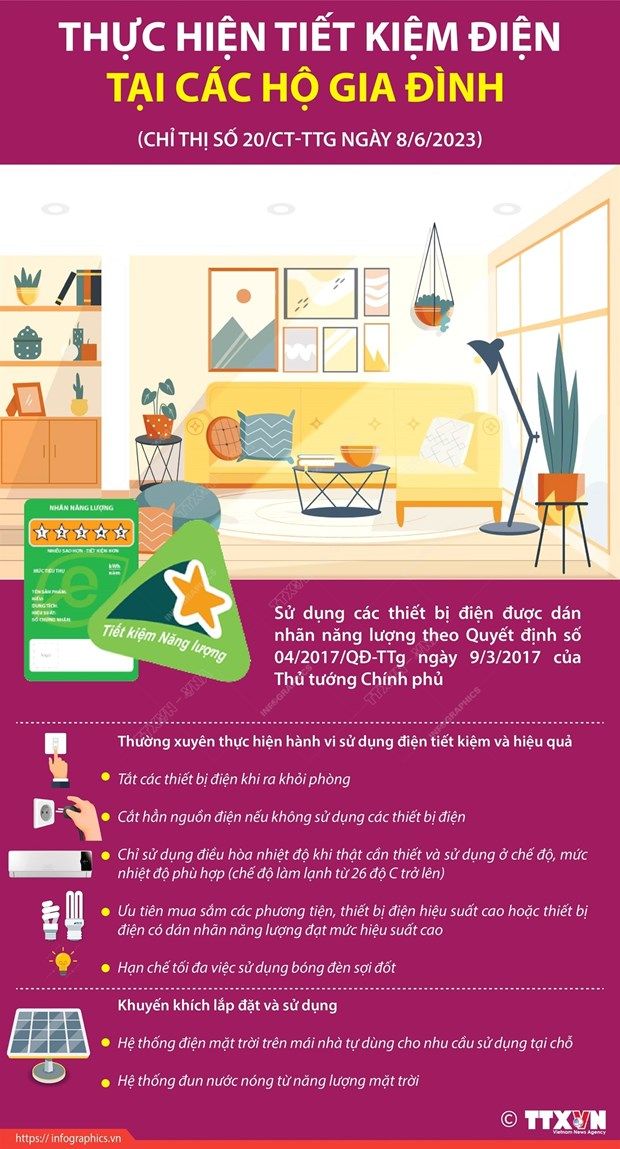Thủ tướng Chính phủ đã ban hành Chỉ thị số 20/CT-TTg về việc tăng cường tiết kiệm điện giai đoạn 2023-2025, yêu cầu thực hiện tiết kiệm điện tại các cơ sở kinh doanh và hộ gia đình.