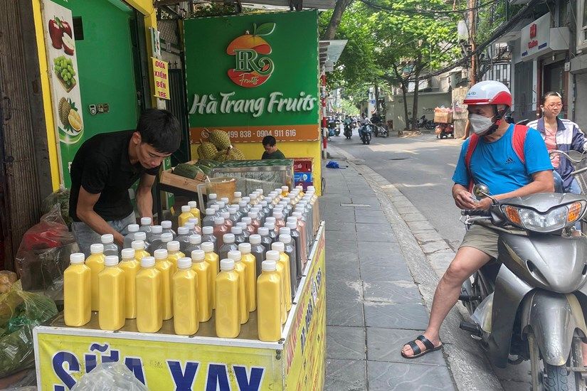 Nhằm phục vụ nhu cầu giải nhiệt của người tiêu dùng Thủ đô trong những ngày nắng nóng, nhiều tiểu thương tại các cửa hàng tiện lợi, quán càphê đã đẩy mạnh kinh doanh mặt hàng nước ép trái cây, rau củ.