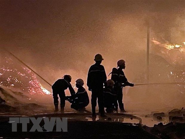 Lửa bùng cháy dữ dội tại khu vực nhà kho, phân xưởng sản xuất của hai doanh nghiệp chuyên sản xuất đồ nhựa gia dụng, hạt nhựa, lan sang phần nhà xưởng của một doanh nghiệp khác liền kề.
