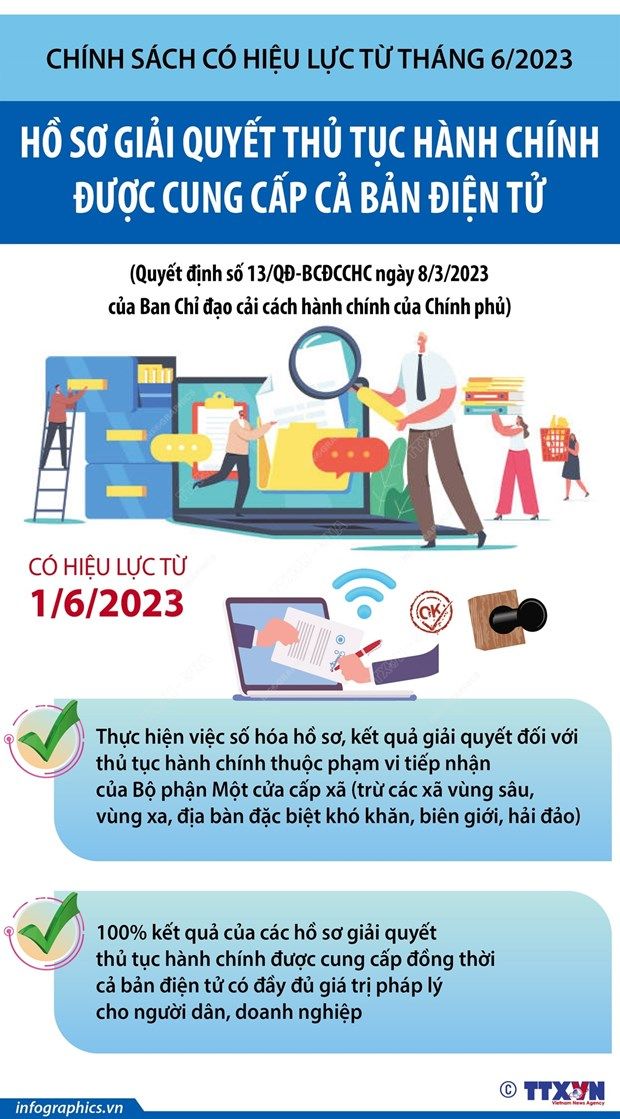 Hồ sơ giải quyết thủ tục hành chính được cung cấp cả bản điện tử