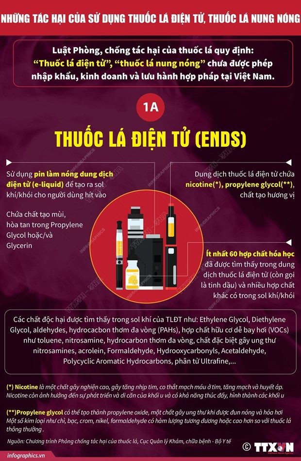 [Infographics] Tác hại của thuốc lá điện tử, thuốc lá nung nóng