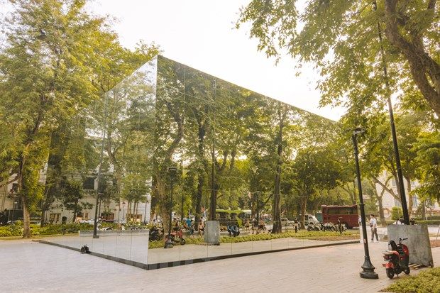 Nhiều người dân và du khách tỏ ra thích thú khi khu vực vườn hoa Diên Hồng (hay còn gọi là vườn hoa Con Cóc) bỗng mọc lên một công trình nhà gương phản chiếu.