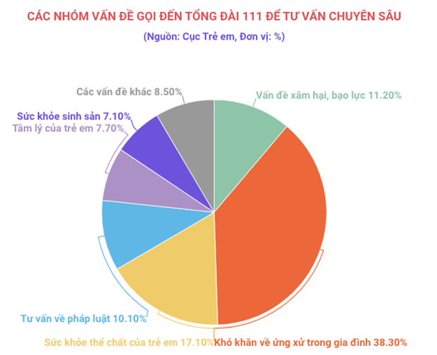 Theo đánh giá của Tổng đài 111, các ca tư vấn liên quan đến xâm hại, bạo lực trẻ em và liên quan đến phát luật đã có xu hướng tăng mạnh trong những năm gần đây.