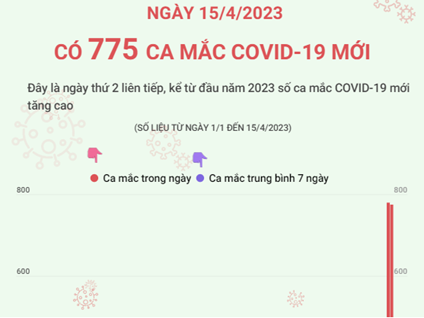Theo Bộ Y tế, ngày 15/4 cả nước có 775 ca mắc mới COVID-19 và đây là ngày thứ 2 liên tiếp kể từ đầu năm 2023, số ca mắc mới COVID-19 tăng cao.