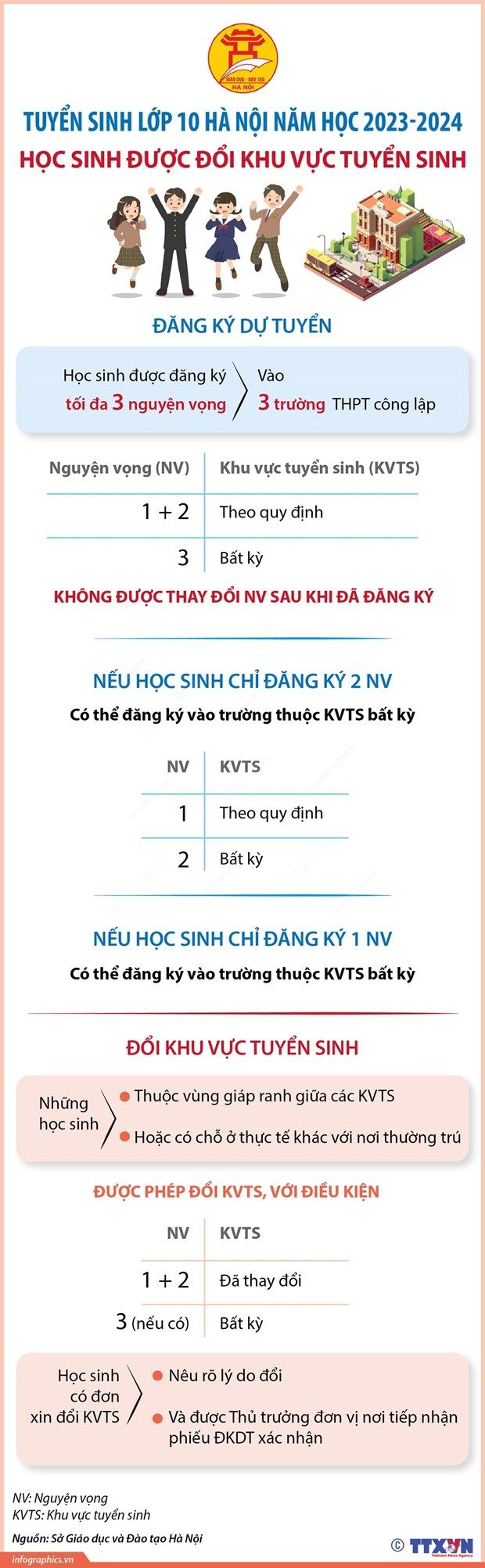 Nhằm tạo thuận lợi cho học sinh khi đăng ký nguyện vọng dự tuyển vào lớp 10 Trung học phổ thông công lập, Sở Giáo dục và Đào tạo Hà Nội cho phép một số trường hợp được đổi khu vực tuyển sinh.