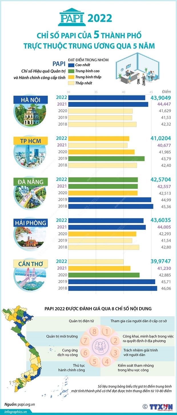 Chỉ số PAPI của 5 thành phố trực thuộc Trung ương qua 5 năm