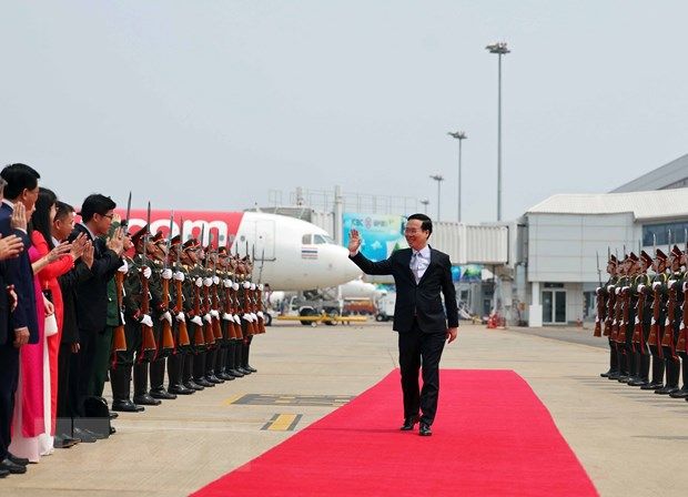 Chiều 11/4, Chủ tịch nước Võ Văn Thưởng cùng Đoàn đại biểu cấp cao Việt Nam rời thủ đô Vientiane, kết thúc tốt đẹp chuyến thăm chính thức Cộng hòa Dân chủ Nhân dân Lào.