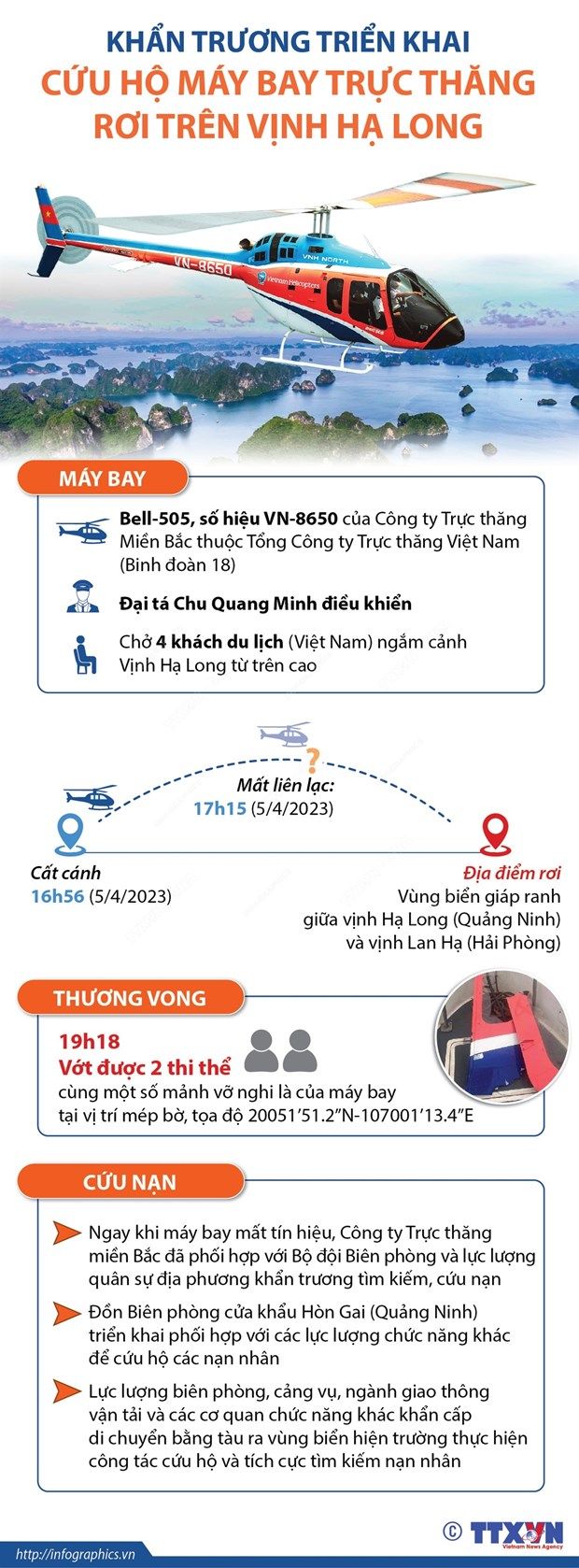 [Infographics] Toàn cảnh vụ rơi máy bay trực thăng trên vịnh Hạ Long