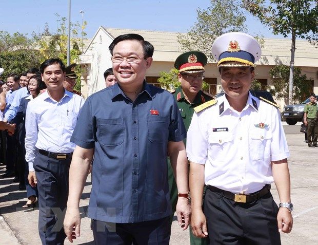Trong chuyến thăm và làm việc tại tỉnh Bình Thuận, chiều 25/3, Chủ tịch Quốc hội Vương Đình Huệ đến thăm, động viên cán bộ, chiến sỹ Lữ đoàn tên lửa bờ 681 thuộc Quân chủng Hải Quân.