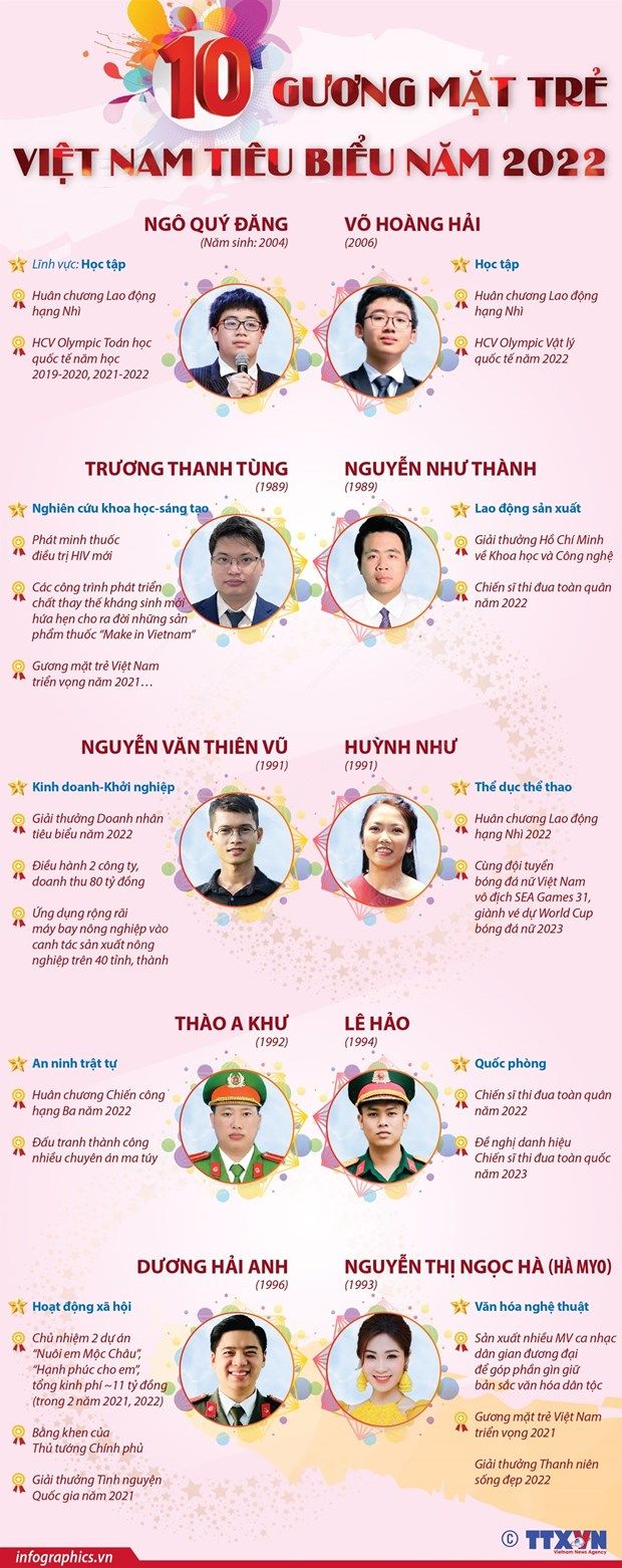 [Infographics] 10 gương mặt trẻ Việt Nam tiêu biểu năm 2022