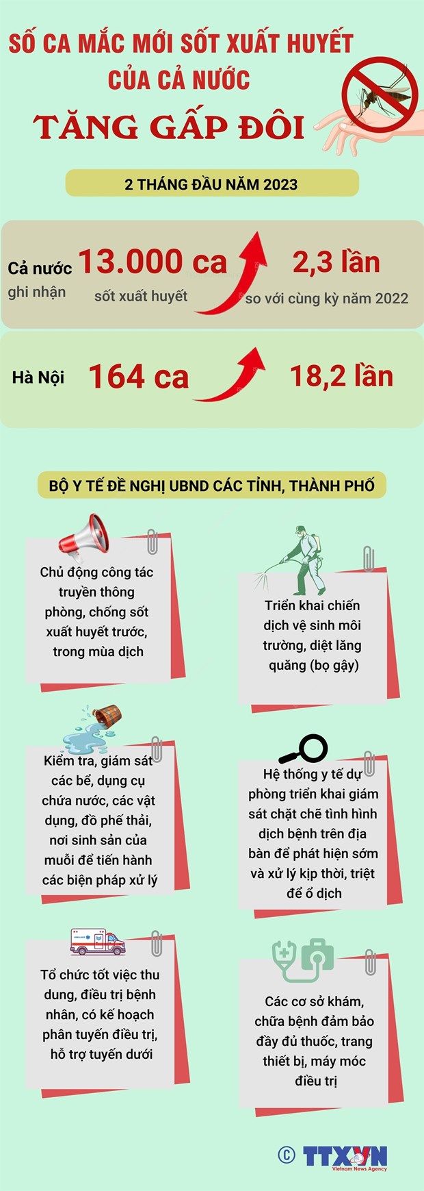 Hiện dịch sốt xuất huyết đang có nguy cơ gia tăng tại nhiều tỉnh, thành trong cả nước, đặc biệt tại một số tỉnh khu vực miền Nam và miền Trung; nguy cơ dịch bùng phát, lan rộng nếu không tích cực.