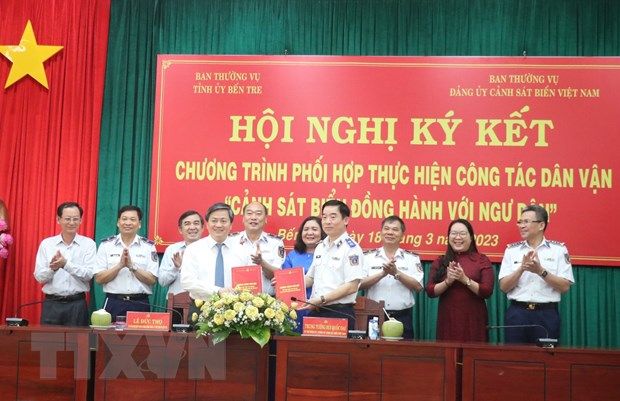 Chương trình ký kết phối hợp dân vận "Cảnh sát biển đồng hành với ngư dân" giữa tỉnh Bến Tre và Cảnh sát biển VN giúp ngư dân vươn khơi, bám biển, góp phần giữ vững chủ quyền biển, đảo của Tổ quốc