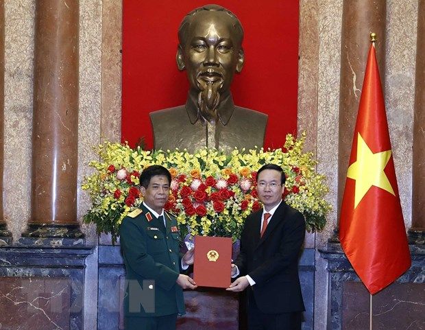 Chiều 16/3, Chủ tịch nước Võ Văn Thưởng trao quyết định thăng quân hàm từ Trung tướng lên Thượng tướng cho ông Nguyễn Văn Nghĩa, Phó Tổng tham mưu trưởng Quân đội nhân dân Việt Nam.
