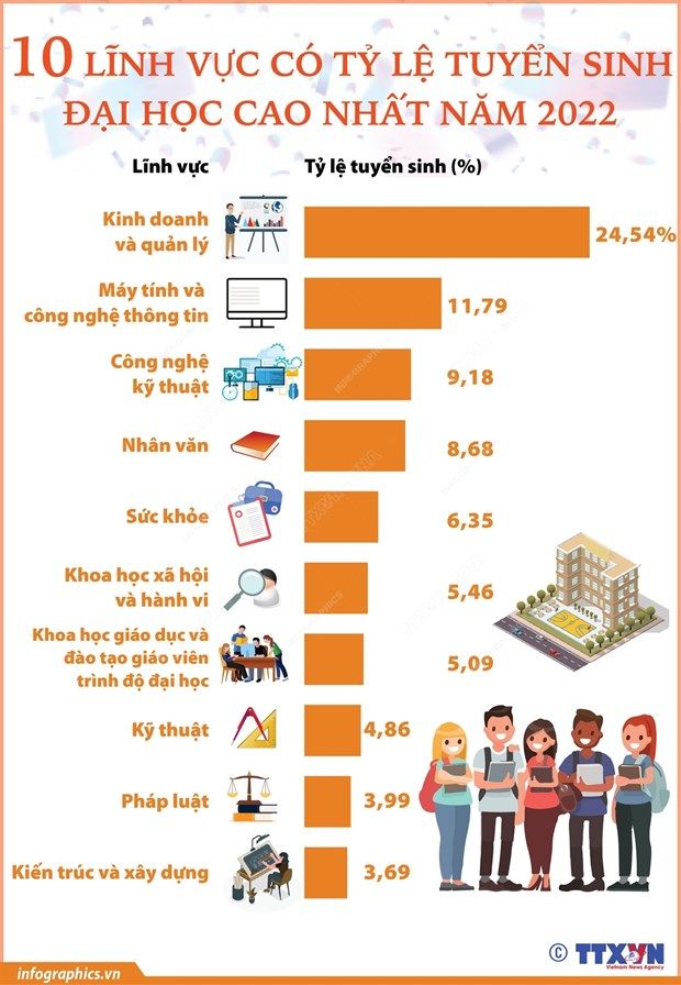 10 lĩnh vực có tỷ lệ tuyển sinh đại học cao nhất năm 2022