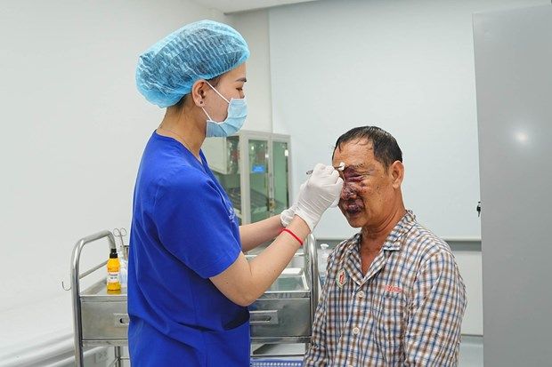 Phẫu thuật cắt khối u như chùm nho trên mặt một người đàn ông