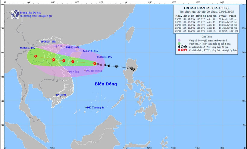 Dự báo trong những ngày tới, nhiều khu vực trên cả nước có mưa rào và dông; riêng khu vực từ Thanh Hóa đến Quảng Trị có mưa to đến rất to từ đêm 24-26/8.