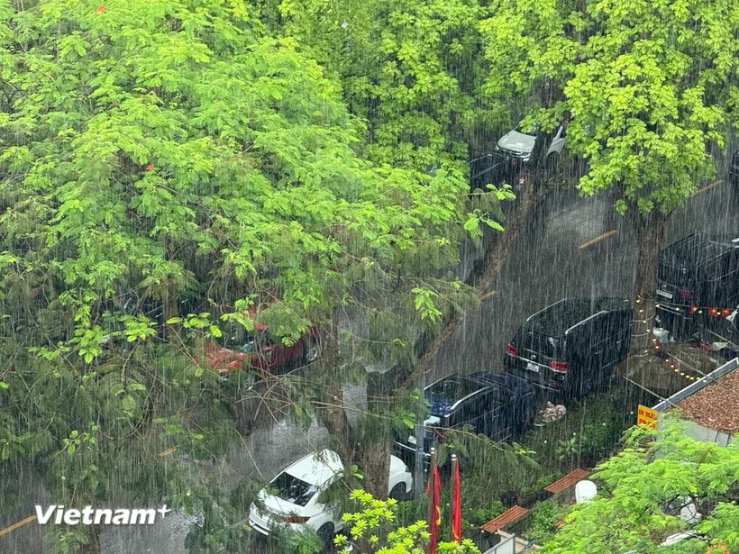Theo dự báo, vùng mưa dông có thể mở rộng sang các phường khác thuộc nội thành Hà Nội, trong cơn mưa có khả năng xảy ra lốc, sét và gió giật mạnh.