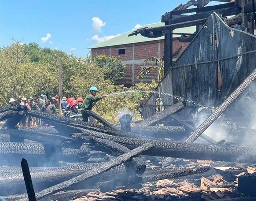 Do vụ cháy xảy ra vào thời điểm nắng nóng gay gắt giữa trưa, các ngôi nhà làm bằng gỗ là vật liệu dễ bắt lửa khiến việc khống chế đám cháy gặp rất nhiều khó khăn.