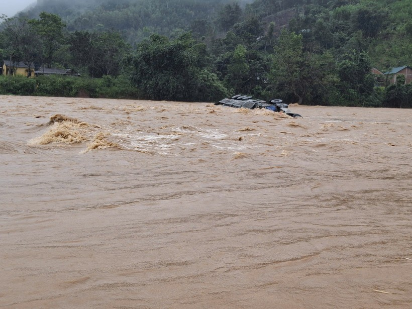 Do nước lũ từ thượng nguồn chảy xiết, khi xe qua được nửa đường thì bị lũ cuốn trôi đầu xe về phía vực. Lúc này, lái xe trèo lên thành xe chờ ứng cứu, nhưng nước lớn khiến xe bị lật, tài xế bị cuốn.