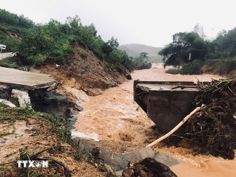 Quảng Ngãi: Mưa lớn làm gãy cây cầu duy nhất đến 2 thôn