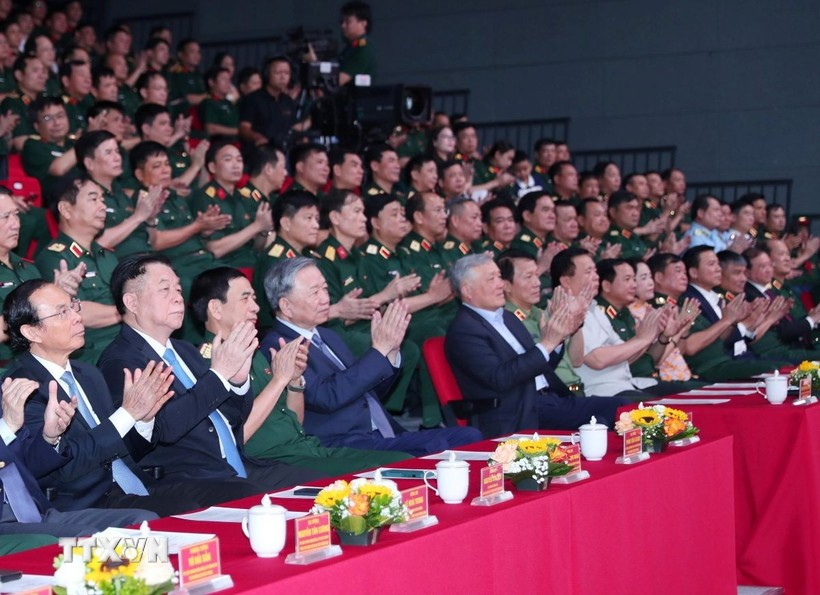 Tối 3/7, tại Hà Nội, Tổng Bí thư Tô Lâm, Bí thư Quân ủy Trung ương dự và chủ trì chương trình giao lưu nghệ thuật “Khắc ghi lời Bác - vang nhịp quân hành.”