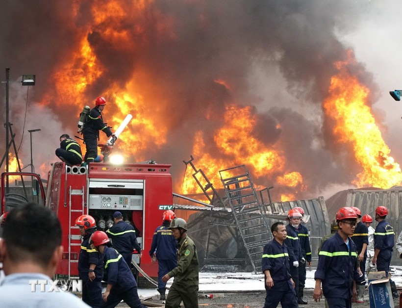 Do bãi xe có một số xe chở hàng hóa dễ cháy nên đám cháy nhanh chóng bùng phát mạnh, người dân nghe thấy nhiều tiếng nổ như sấm, cột khói dài hàng cây số.
