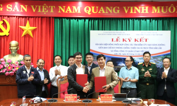 Ngày 25/12/2024 tại UBND Tỉnh Đắk Lắk đã diễn ra Lễ ký kết văn bản hiệp đồng phối hợp công tác Tìm kiếm cứu nạn hàng không giữa Ban chỉ huy Tìm kiếm cứu nạn hàng không thuộc Tổng công ty Quản lý bay Việt Nam và UBND Tỉnh Đắk Lắk.