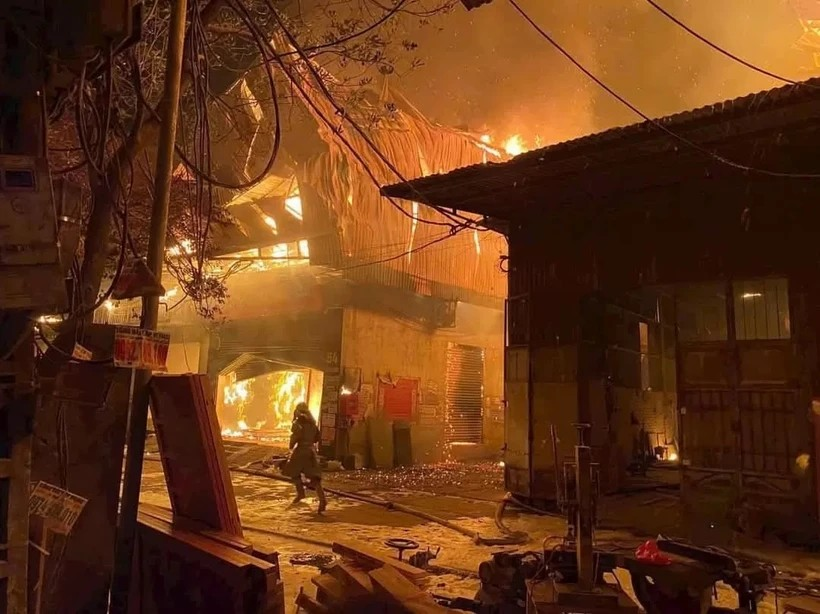 Vụ hỏa hoạn xảy ra vào khoảng 20 giờ 30 ngày 12/12 tại một xưởng gỗ; lửa và khói bốc lên cuồn cuộn từ ngôi nhà 2 tầng rồi nhanh chóng bắt cháy sang các cửa hàng, xưởng đồ gỗ bên cạnh.