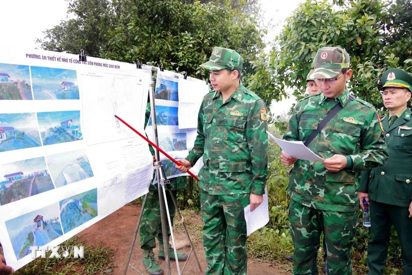 Hai bên tiến hành khảo sát thực địa, đánh giá sự cần thiết, những tác động của việc xây dựng Nhà tổ công tác Biên phòng và mở rộng đường tuần tra biên giới tại khu vực Mốc giao điểm bên phía Việt Nam.