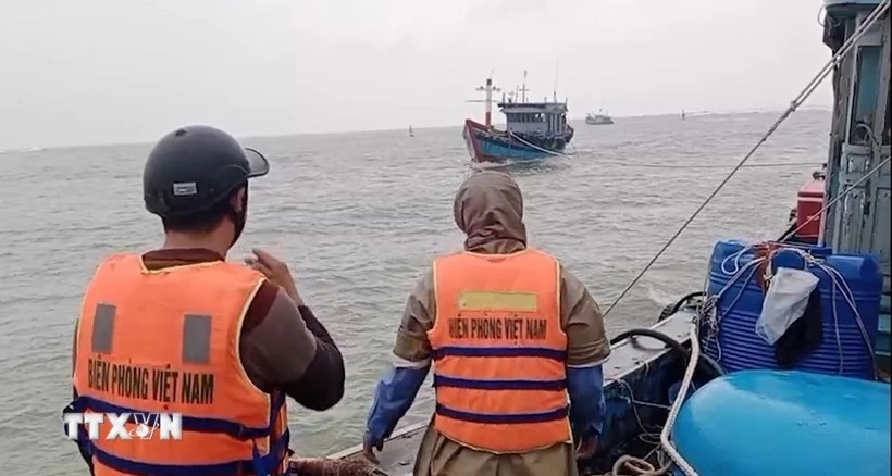 Đồn Biên phòng Cửa khẩu Cảng Gianh đã điều động lực lượng cùng địa phương kịp thời hỗ trợ kéo tàu cá gặp sự cố trên biển cùng ngư dân vào bờ an toàn.